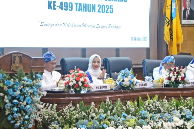 Hal ini dipaparkan Ratu Zakiyah sapaan Ratu Rachmatuzakiyah saat menyampaikan sambutannya pada Rapat Paripurna Istimewa DPRD Kabupaten Serang dalam rangka Memeringati Hari Jadi ke – 499 Kabupaten Serang Tahun 2025 di Gedung DPRD pada Rabu, 8 Okotber 2025.