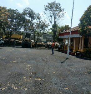 Serang – Sejumlah petugas proyek menggunakan alat berat untuk meratakan aspal hotmix bekas pengerukan jalan…
